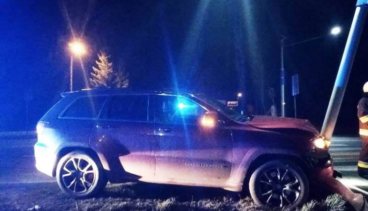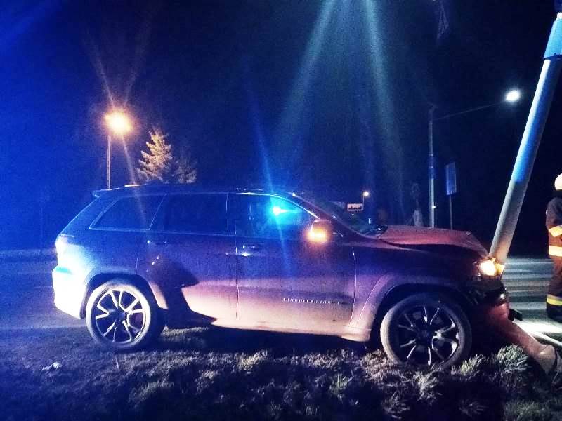 Kierowca Jeepa uderzył w słup sygnalizacyjny.