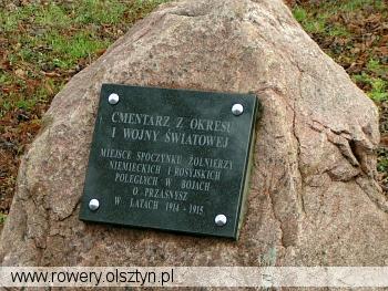 Obrębiec. Na cmentarzu spoczywają żołnierze polegli w bitwie przasnyskiej oraz w walkach w końcu 1914 roku stoczonych między 24 dywizją piechoty a rosyjskimi oddziałami 4 Armii gen. Schejdemanna z Korpusu Turkiestańskiego. Cmentarz wygląda tak jak grzebano tam żołnierzy, poznać można po wielkości i wieku drzew tam rosnących. Na cmentarzu znajduje się kilka rzędów nagrobków a pośród nich większa płyta na grobie niemieckiego oficera. Cmentarz ogrodzony posiadający od kilku lat tablicę informującą o spoczynku żołnierzy niemieckich i rosyjskich.