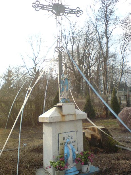 | Kosmowo. Mogiła zbiorowa. Po cmentarzu zostało praktycznie miejsce pochówku żołnierzy niemieckich i rosyjskich poległych w bitwach przasnyskich w czasieI wojny światowej. Szczątki żołnierzy przeniesione zostały na cmentarz do pobliskiego Chojnowa. Obecnie są tylko dwa słupy z zawiasami po bramie cmentarnej, tablica informacyjna o miejscu pochówku a po środku figurka postawiona w późniejszym terminie. Miejsce symbolicznie ogrodzone. Na terenie po byłym cmentarzu jest obecnie pole uprawne. Obiekt dobrze utrzymany pod opieką gminy. |