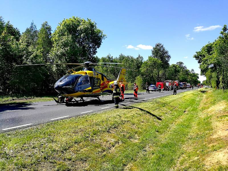 W wyniku zderzenia Skoda dachowała. 35 – letni kierowca doznał obrażeń ciała skutkujących ciężkim uszczerbkiem na zdrowiu i śmigłowcem został przetransportowany do szpitala w Warszawie.